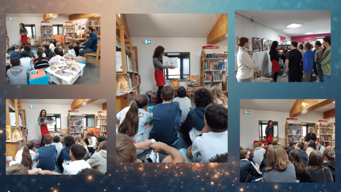 Comme chaque année, nos 3 classes de 6ème sont parties découvrir la médiathèque et rencontrer Mme Amblard, médiathécaire. Celle-ci nous a fait la visite des locaux, préparer une sélection de livres à emprunter, puis elle a lu un conte.